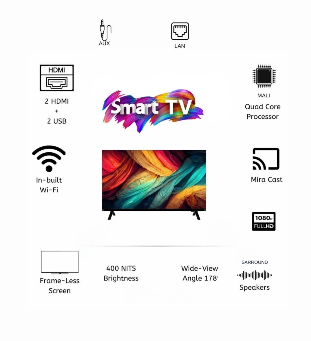 With built-in Wi-Fi, a vibrant 1080p Full HD display, 1GB RAM, and 8GB storage, you get a smooth and connected smart TV experience in a sleek, modern design.