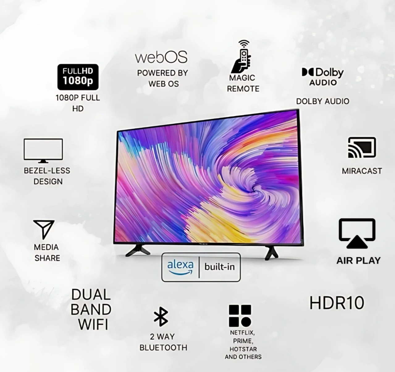 Experience a smarter way to watch with our 32-inch WEBOS Smart Full HD LED TV. Designed to combine sleek aesthetics with powerful functionality, this TV offers seamless access to your favorite content through a smooth, intuitive WEBOS interface.