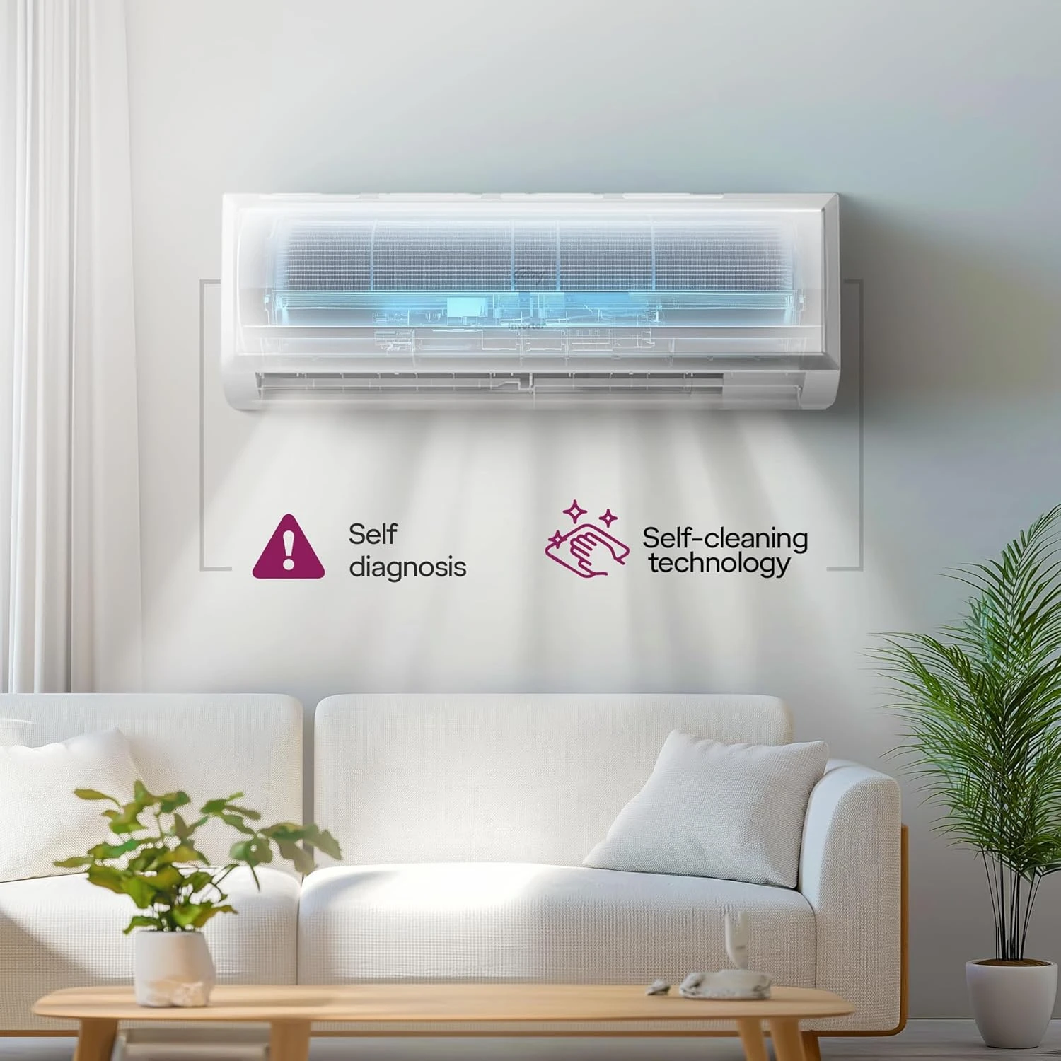 Anti‑Microbial Self‑Clean & Self‑Diagnosis for improved air quality and easier maintenance.